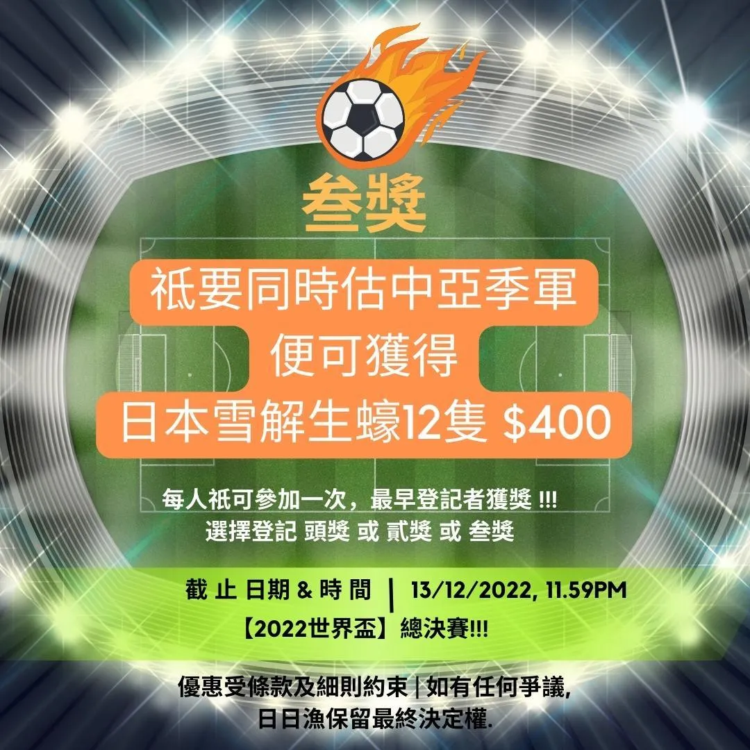 優惠受條款及細則約束. 如有任何爭議, 日日漁保留最終決定權.